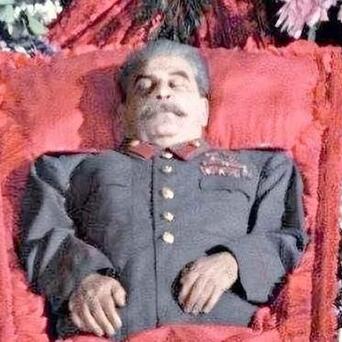 斯大林身着那套人们熟悉的最高统帅制服躺在里面,防腐处理使他的面部呈现出一种凝固的淡黄色。
